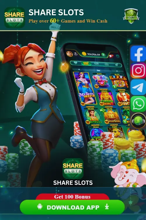 “The world’s best game — Share Slots Game. Get a ₹550 welcome bonus as soon as you download the app. Also, 100% guarantee of minimum ₹100 withdrawal. This is the world’s most profitable gaming app — Share Slots APK.”